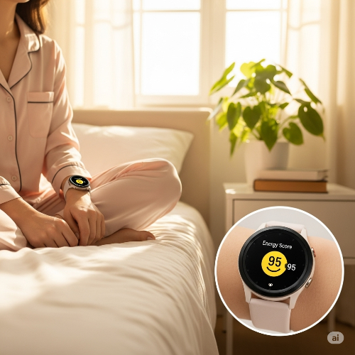 밤새 뒤척였던 날, 유독 피곤했던 날의 아침을 기억하시나요? 이제 갤럭시 워치는 잠자는 동안의 심박수, 뒤척임, 호흡 패턴 등을 갤럭시 AI가 똑똑하게 분석해서 아침에 **'에너지 점수'**라는 이름으로 제 컨디션 배터리 잔량을 알려줘요. 100점 만점에 가까울수록 "오늘 컨디션 최고! 뭐든 할 수 있어!"라는 의미고, 점수가 낮다면 "오늘은 무리하지 말고, 조금 쉬어가는 게 좋겠어"라는 내 몸의 신호인 셈이죠.