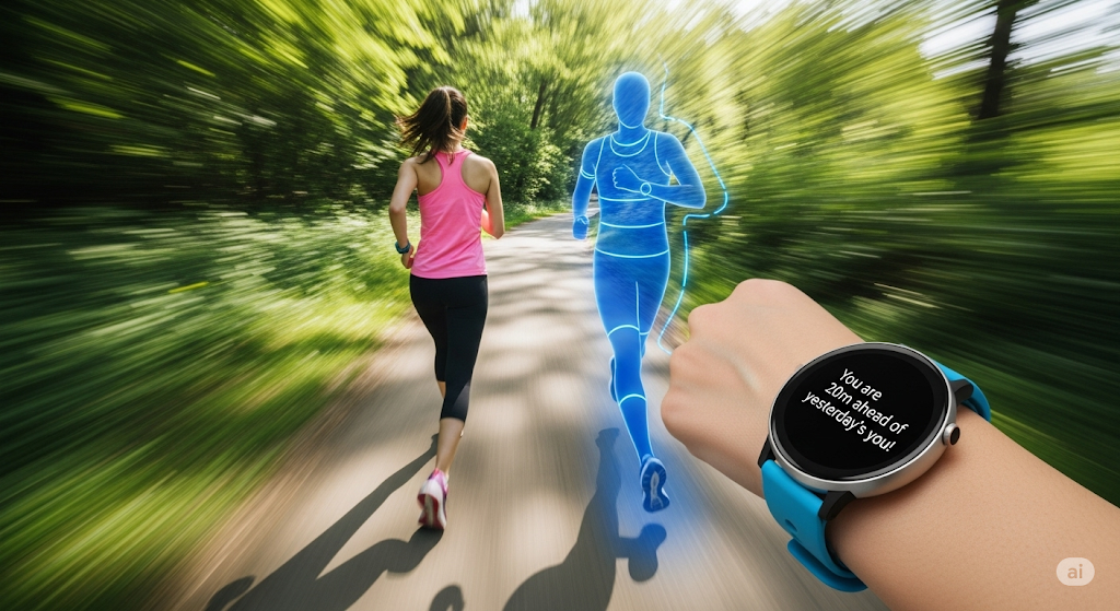 혼자 공원을 달릴 때, 어제보다 조금 더 빨리, 조금 더 멀리 달려보고 싶다는 생각 안 해보셨나요? '레이스(Race)' 기능은 같은 경로를 달릴 때 과거의 내 기록과 실시간으로 경쟁할 수 있게 해주는 재미있는 기능이에요. 화면에 보이는 어제의 나를 앞지르기 위해 달리다 보면, 힘든 운동이 아니라 즐거운 게임처럼 느껴질 거예요. 목표를 향해 나아가는 성취감을 손목 위에서 직접 느껴보세요!