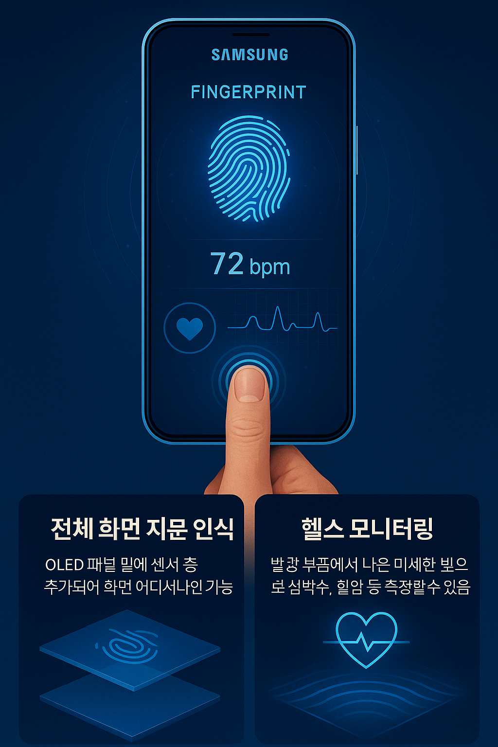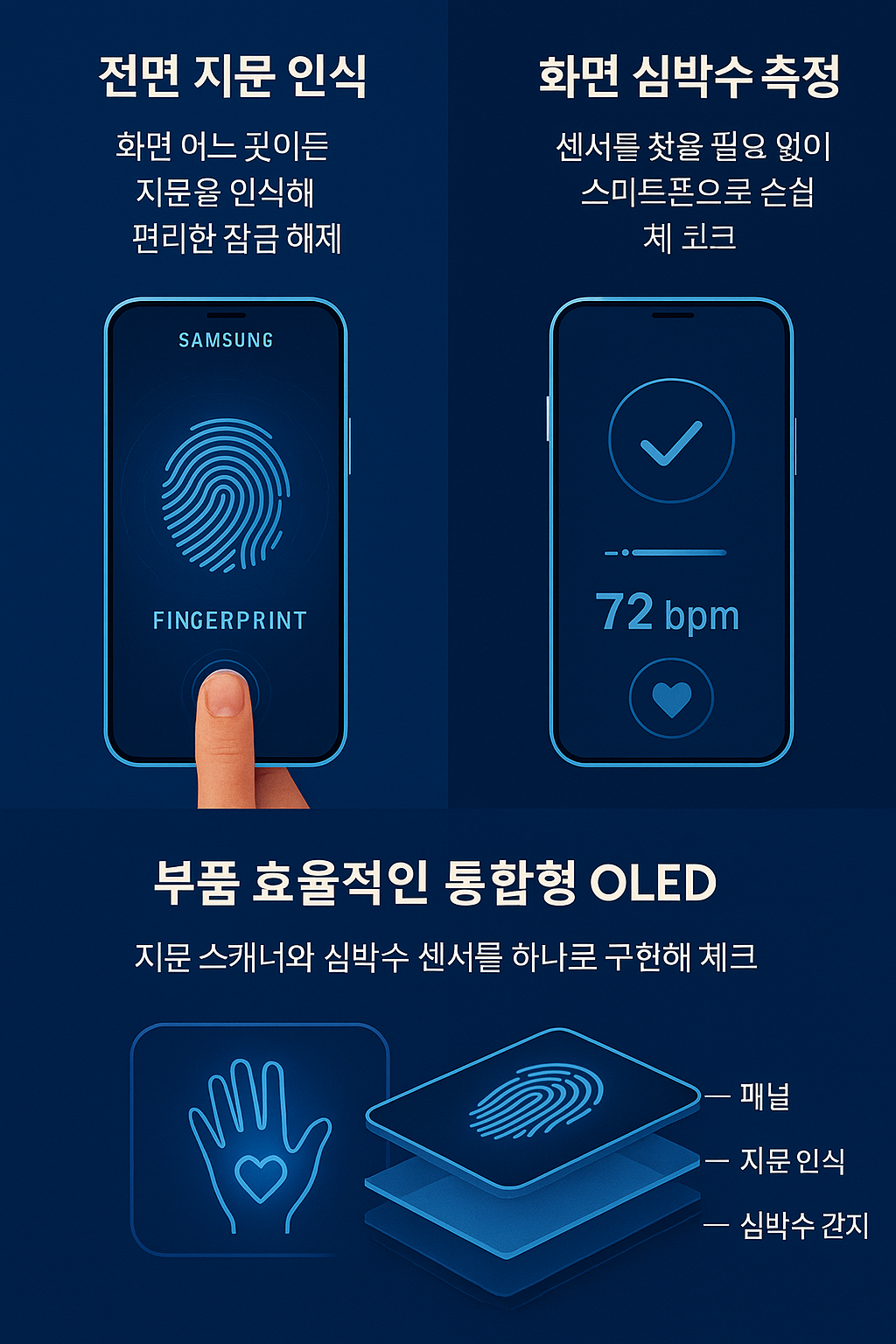 지문 센서와 헬스 센서를 패널에 완전히 통합함으로써,