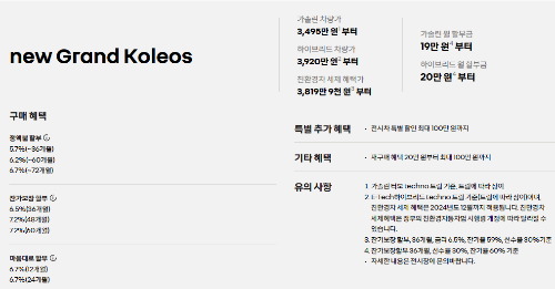 - 네, 그랑 콜레오스의 모든 트림에 24개월 및 36개월 무이자 할부 혜택이 적용됩니다. 😊