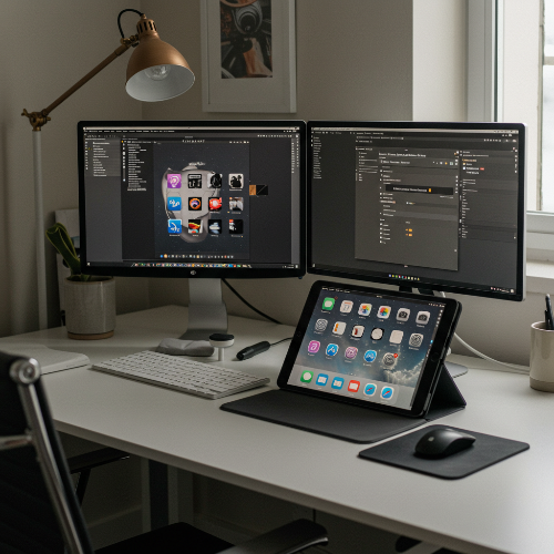 - 아이패드 본체 + 외부 모니터 2대 = 3개의 작업 화면
