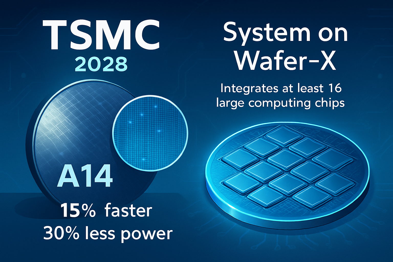 대만 반도체 제조 회사 TSMC가 2028년 출시 예정인 A14 제조 공정과 System on Wafer-X (SoW-X) 기술을 발표했습니다.