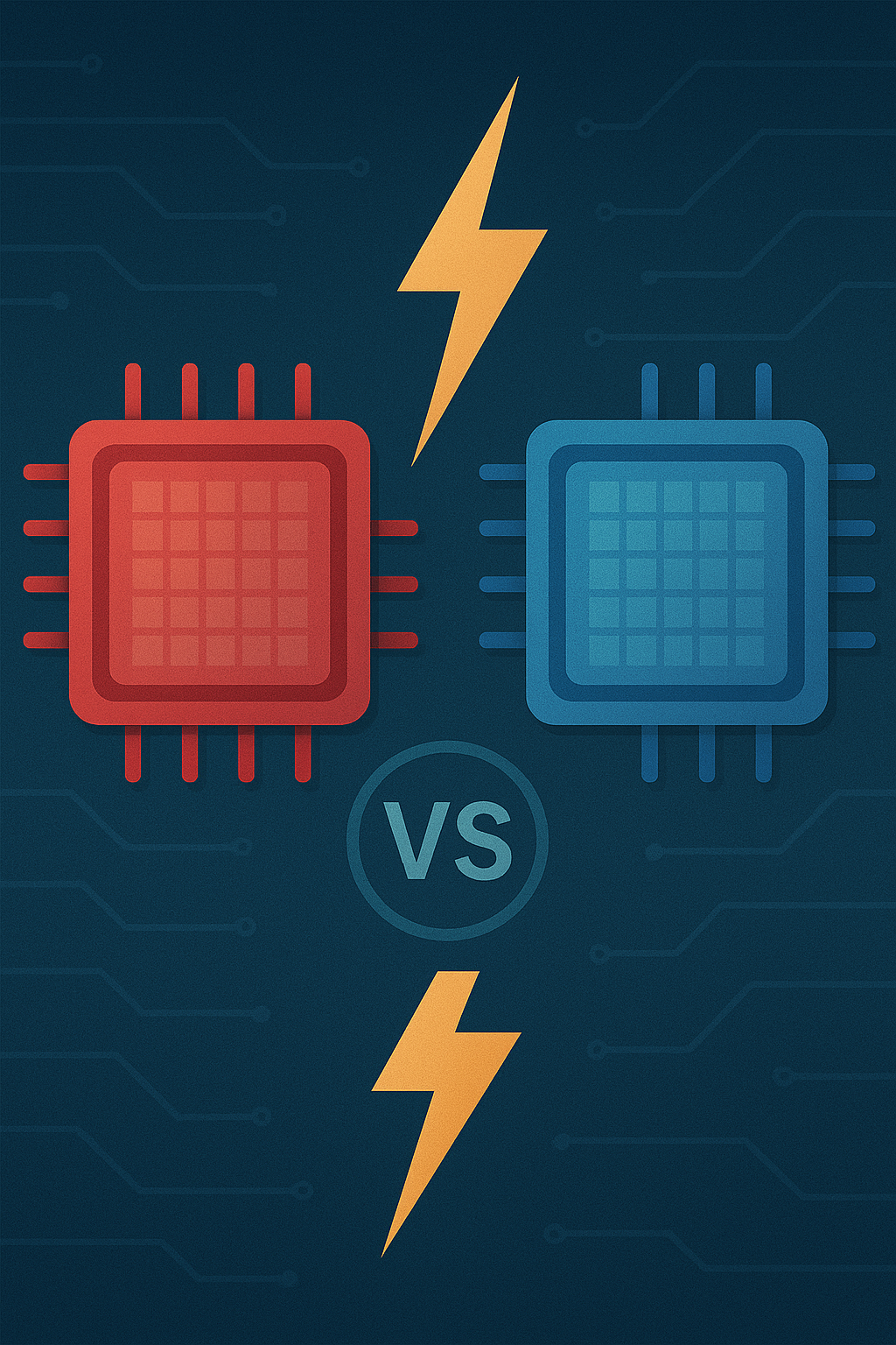 📷 이미지: "반짝이는 실리콘 웨이퍼 위에 미세 공정 노드를 확대해서 보여주는 디지털 일러스트"