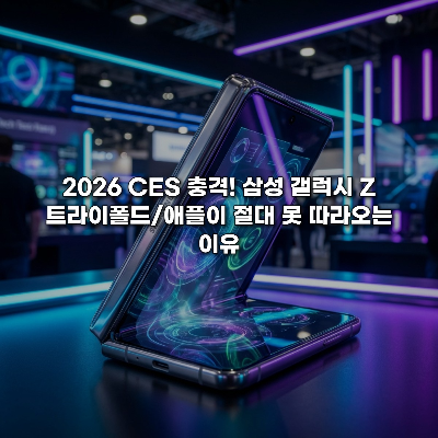 2026년 1월 14일, 미국 라스베이거스에서 열린 CES 2026 현장은 그야말로 충격과 환호의 도가니였습니다. 수많은 혁신 기술이 쏟아져 나왔지만, 모든 관람객과 전문가들의 시선은 단 하나의 제품에 고정되었습니다. 바로 삼성이 공개한 세계 최초의 완성형 3단 접이식 스마트폰, '갤럭시 Z 트라이폴드(Galaxy Z Tri-Fold)'입니다. 애플이 여전히 폴더블 시장 진입을 망설이는 사이, 삼성은 또 한 번 기술 격차를 '넘사벽' 수준으로 벌려놓았습니다.